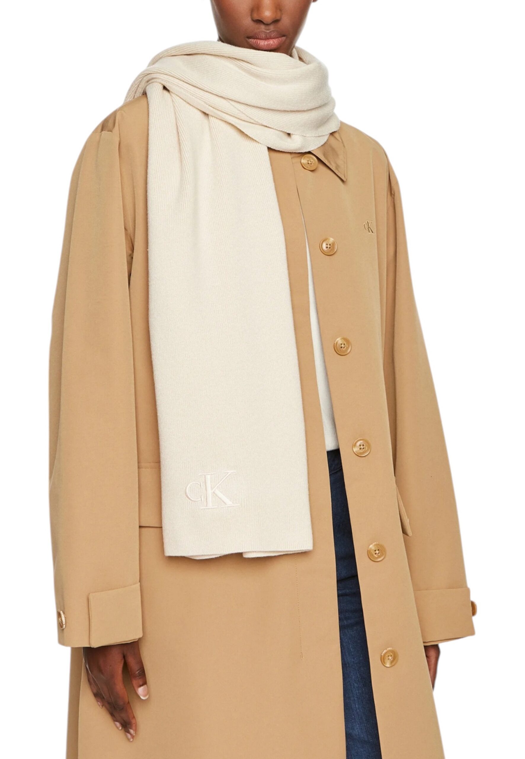Cette écharpe en polyester premium révèle des dimensions généreuses de 176 cm de longueur et 50 cm de largeur pour un drapé magistral et une protection optimale contre le froid. Le motif monochrome épuré incarne parfaitement l’esthétique minimaliste de la maison, tandis que la texture fluide offre une légèreté remarquable qui se porte aussi bien en écharpe classique qu’en étole sophistiquée. La teinte beige intemporelle apporte une luminosité naturelle qui sublime toutes les tenues hivernales avec une élégance discrète. Une création raffinée qui transcende l’accessoire fonctionnel pour atteindre le statut d’indispensable polyvalent du vestiaire féminin contemporain. Style Smart Casual : Écharpe beige + jean brut + pull col rond camel + baskets blanches → Une douceur naturelle qui fait briller ton style