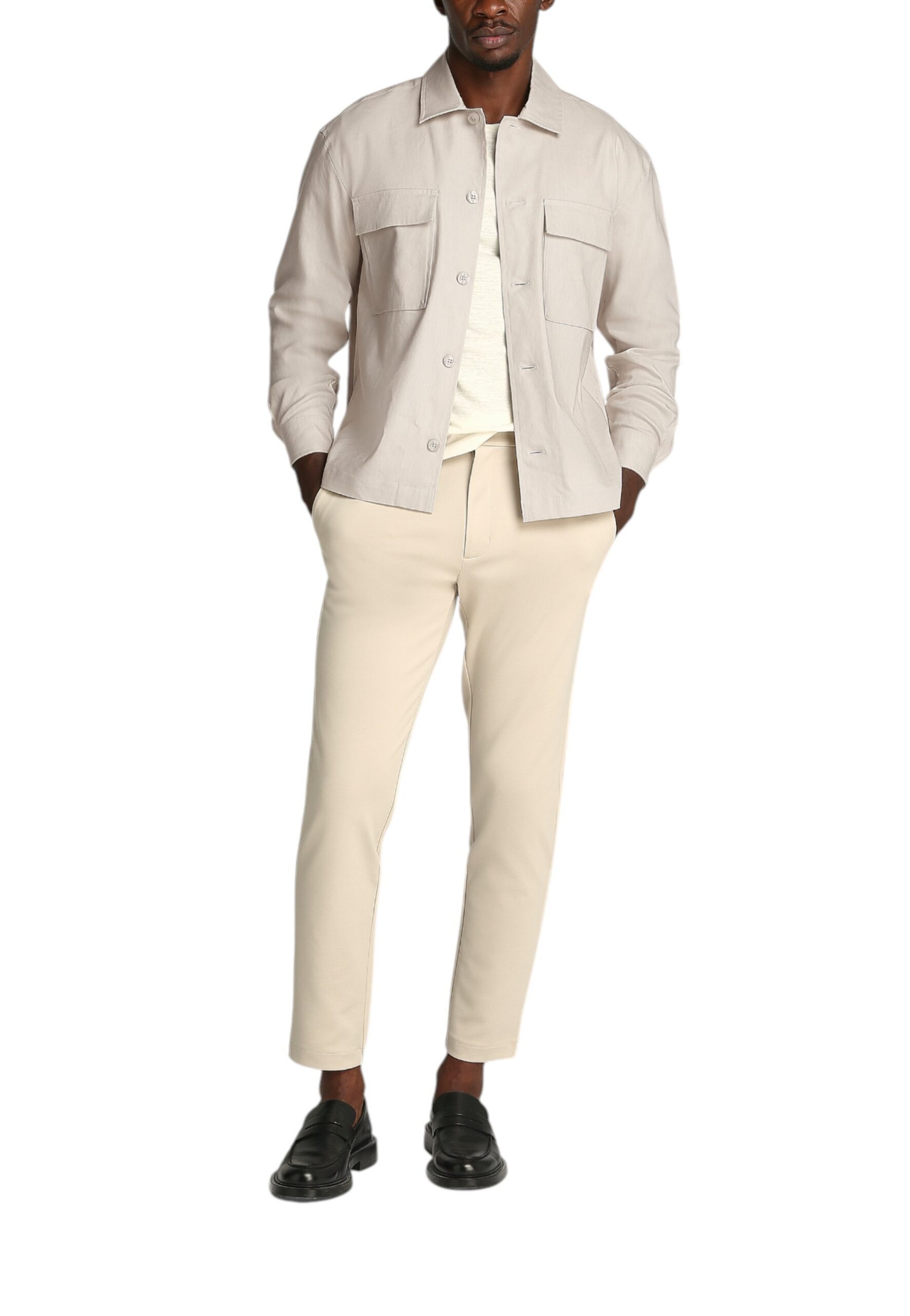 Cette chemise révèle une composition exceptionnelle fusionnant 47% de lin noble, 51% de lyocell écoresponsable et 2% d’élasthanne pour un confort absolu et une liberté de mouvement incomparable. Les manches longues et le col classique incarnent l’élégance intemporelle, tandis que la fermeture boutonnée apporte une finition impeccable. Le mélange lin-lyocell offre une respirabilité magistrale et une texture naturellement froissée qui apporte du caractère sans jamais paraître négligé. La teinte beige lumineuse sublime le teint et s’harmonise parfaitement avec toutes les nuances du vestiaire estival. Une création sophistiquée qui transcende la chemise basique pour atteindre l’excellence du vestiaire masculin contemporain. Style Smart Casual : Chemise beige + chino blanc + ceinture cuir marron + mocassins → Une élégance estivale qui fait sensation absolue