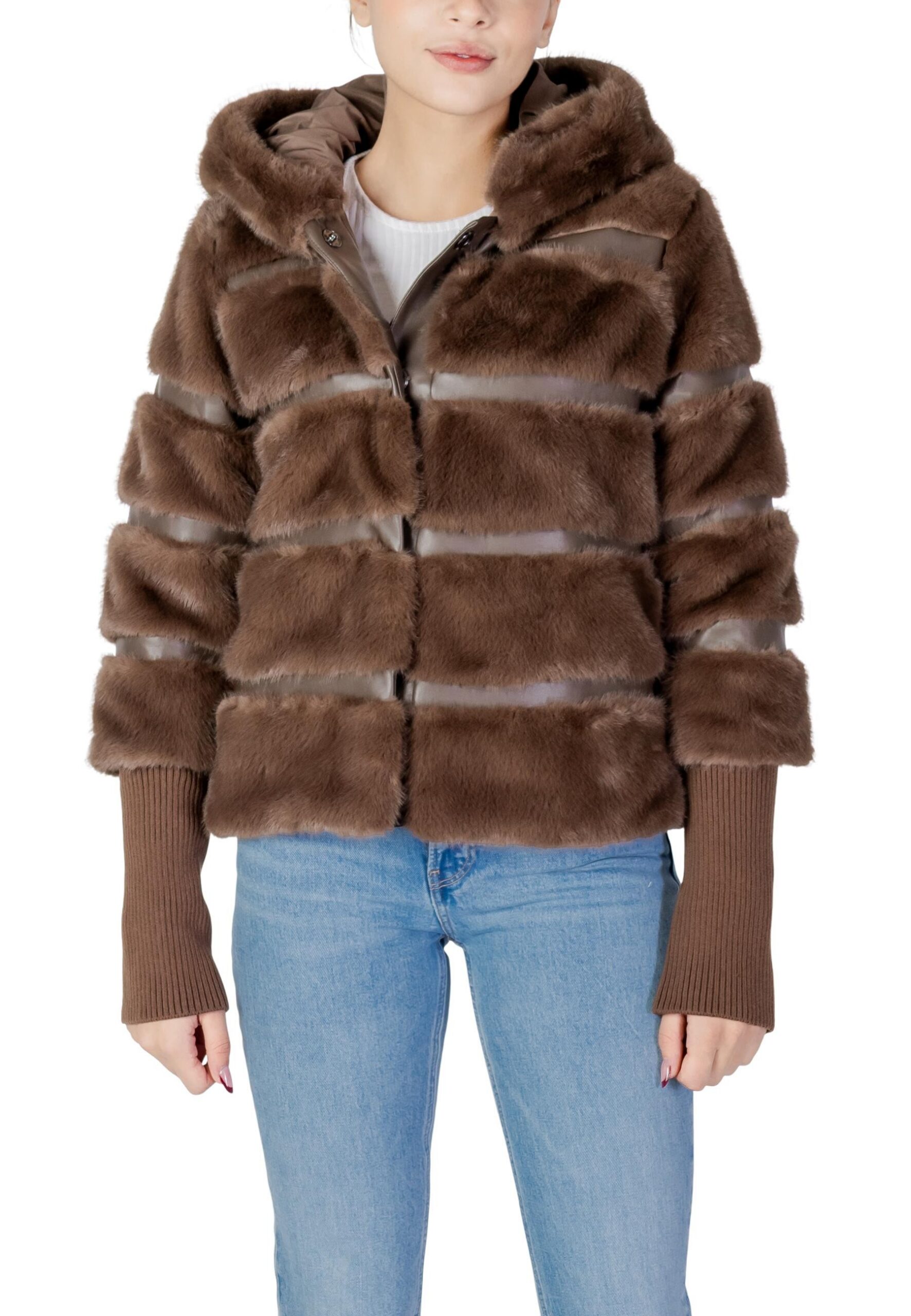 Marque: Choral Sexe: Femme Typologie: Jaquettes Saison: Automne/Hiver DÉTAILS DU PRODUIT • Couleur: marron • Manches: longues • Encolure: en V • Col: capuche •…