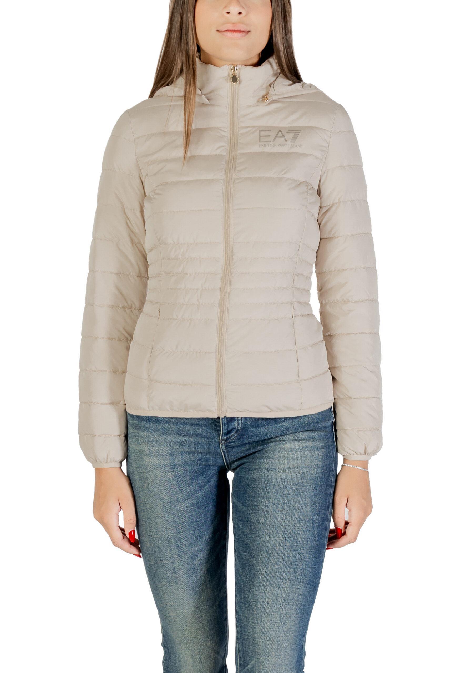 Marque: Ea7 Sexe: Femme Typologie: Vestes Saison: Automne/Hiver DÉTAILS DU PRODUIT • Couleur: beige • Fermeture: avec fermeture éclair • Manches: longues • Encolure: montant…