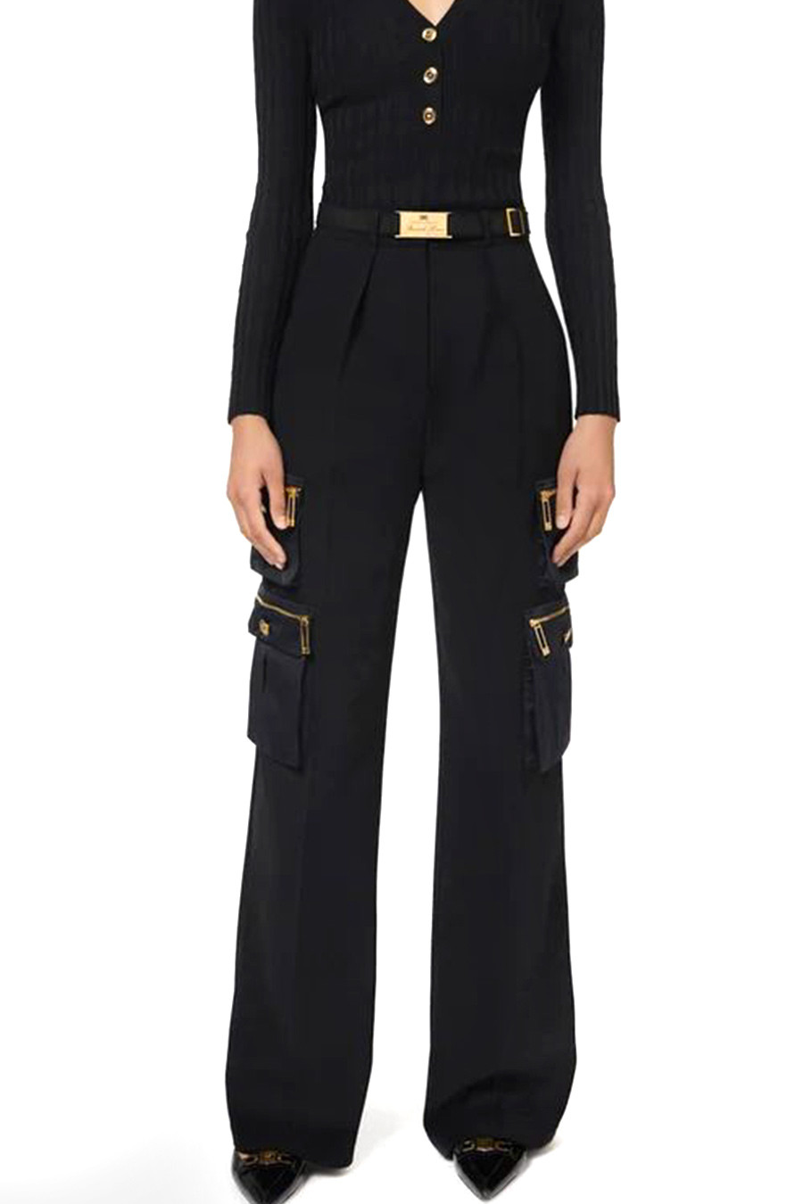 Marque: Elisabetta Franchi Sexe: Femme Typologie: Pantalons Saison: Automne/Hiver DÉTAILS DU PRODUIT • Couleur: noir • Fermeture: zip et bouton • Poches: frontales-arrières-latérales • Code…