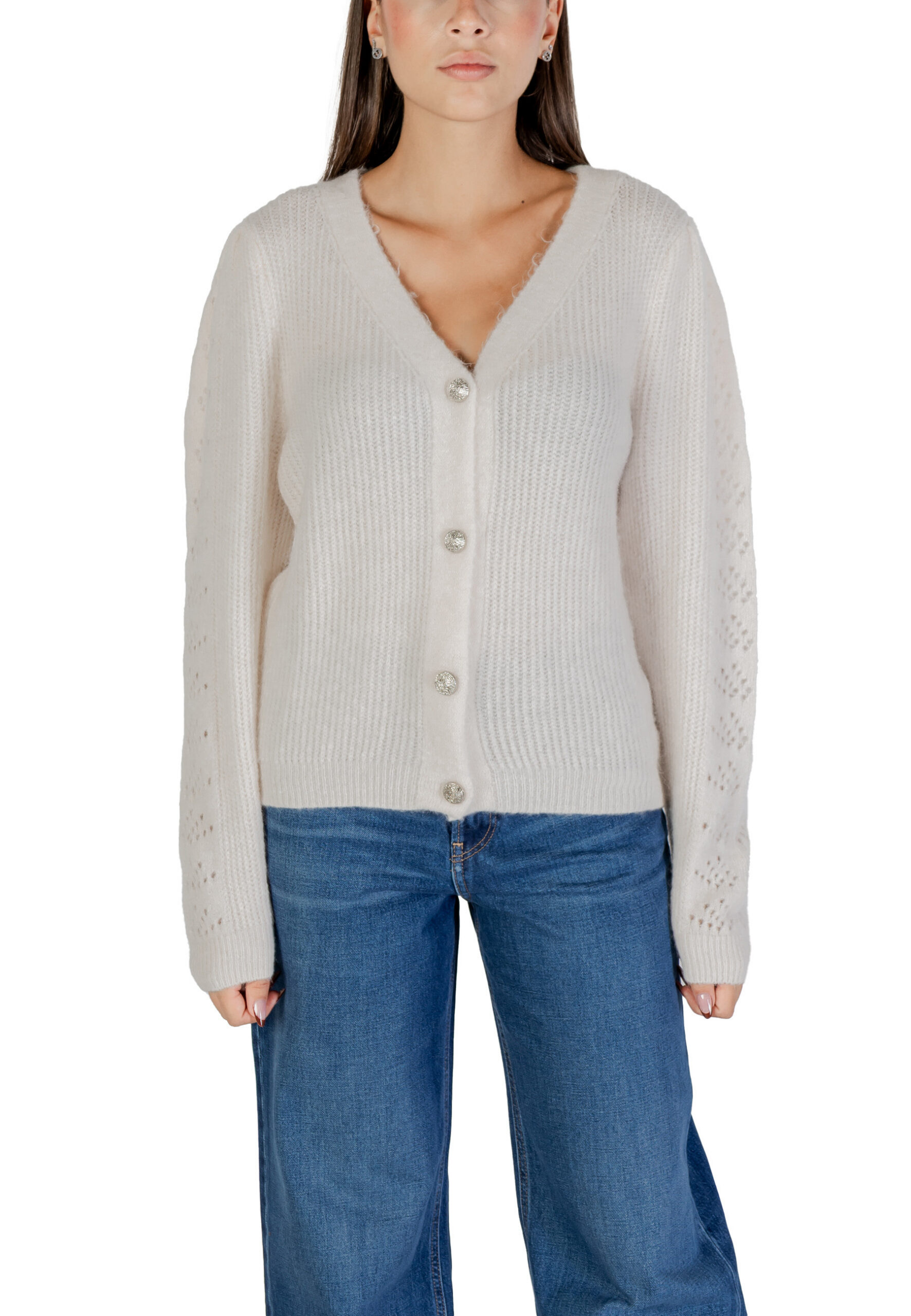 Marque: Morgan De Toi Sexe: Femme Typologie: Pulls Saison: Automne/Hiver DÉTAILS DU PRODUIT • Couleur: blanc • Fermeture: boutons • Manches: longues • Encolure: en…
