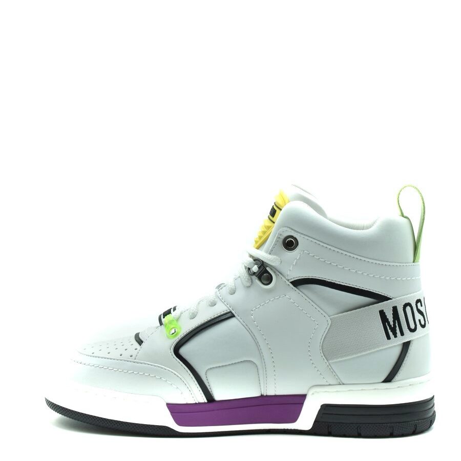 Ces baskets exceptionnelles en pur cuir blanc révèlent l’esprit sportswear luxe de Moschino dans une silhouette basse contemporaine. La fermeture à lacets assure un ajustement parfait tandis que la matière premium garantit une durabilité remarquable et un confort absolu. Le design épuré aux lignes sportives élégantes crée une esthétique intemporelle. Les finitions impeccables et la construction soignée témoignent d’un savoir-faire exceptionnel. Une création raffinée qui transcende les codes du streetwear pour atteindre l’excellence du style urbain sophistiqué.