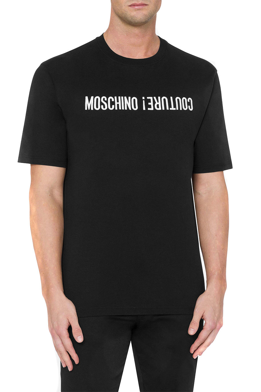 Marque: Moschino Sexe: Homme Typologie: T-Shirts Saison: Automne/Hiver DÉTAILS DU PRODUIT • Couleur: noir • Motif: impression • Manches: courtes • Encolure: rond • Code…