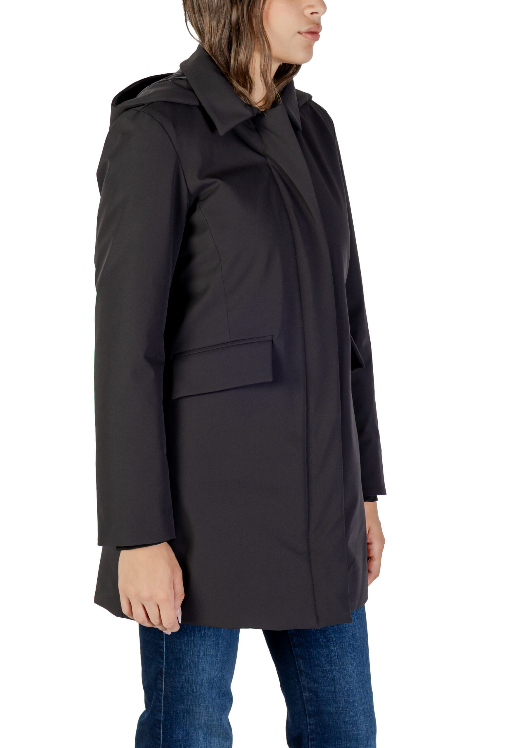 Allure Chic Moderne : Veste Stretch Capuche Peuterey + pantalon fluide + escarpins métallisés → L’incarnation de l’élégance athleisure contemporaine